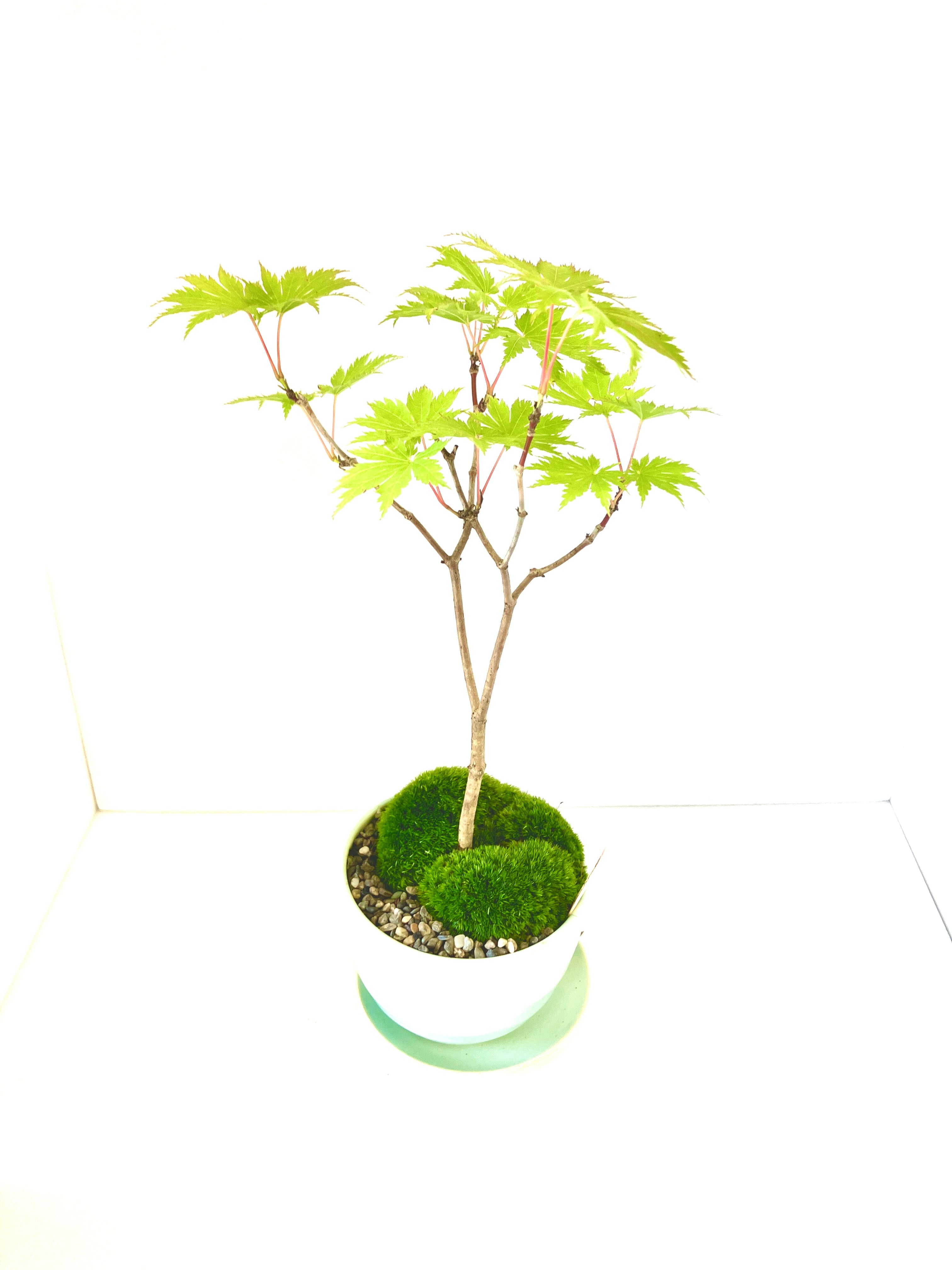 夏から秋の彩りを楽しむ苔盆栽 もみじ